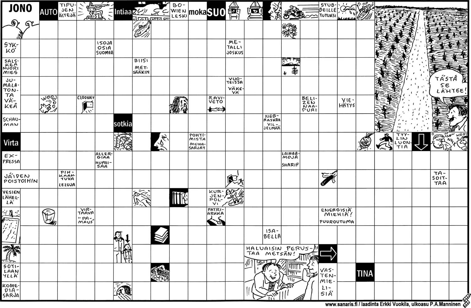 Metsälehti 16/25Tyyppi: ristikkoVaikeustaso: helppo/kesk. Laatija: Erkki Vuokila Piirtäjä: P.A. Manninen |