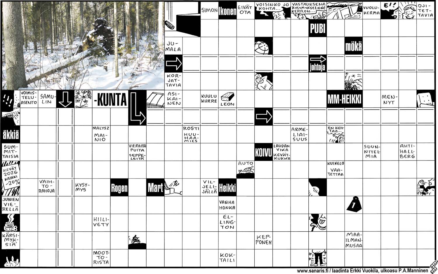 Metsälehti 3/26Tyyppi: kryptoVaikeustaso: helppo/kesk. Laatija: Erkki Vuokila Piirtäjä: Erkki Vuokila |