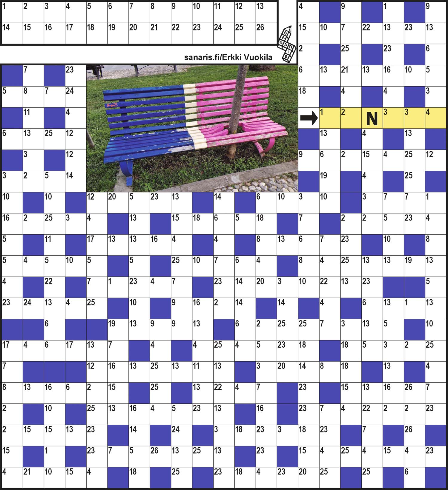 Metsälehti 5/26Tyyppi: kryptoVaikeustaso: helppo/kesk. Laatija: Erkki Vuokila Piirtäjä: Erkki Vuokila |