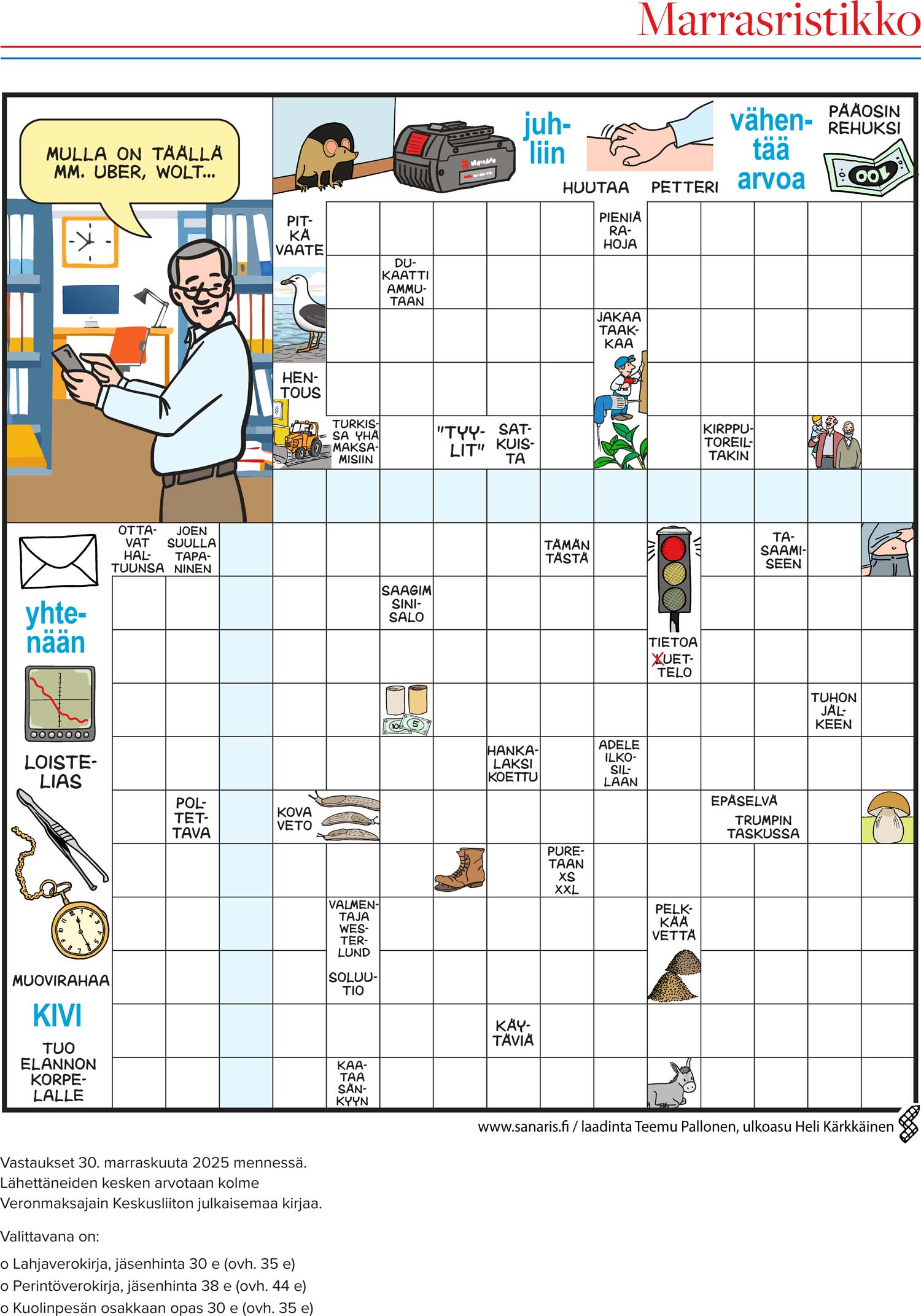 Taloustaito 10/25Tyyppi: ristikkoVaikeustaso: helppo/kesk. Laatija: Teemu Pallonen Piirtäjä: Heli Kärkkäinen |